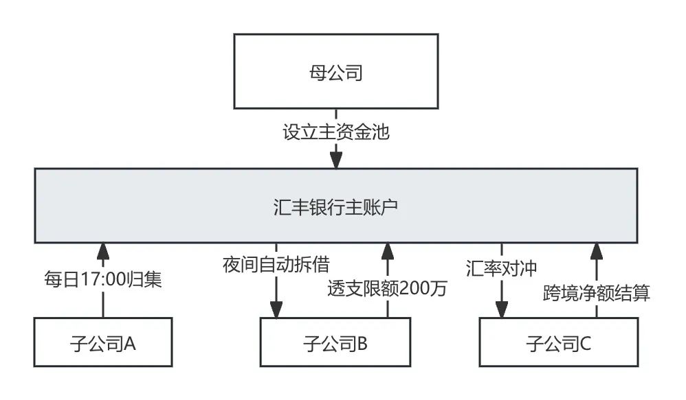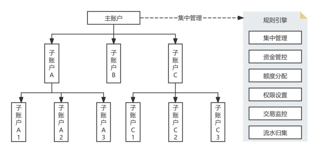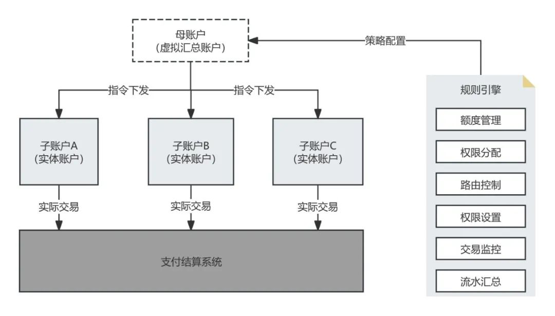 与“母实子虚”相反,这种结构中母账户为虚拟账户,不直接处理资金;子账户为实体账户,承担实际的资金存取和交易职责。
