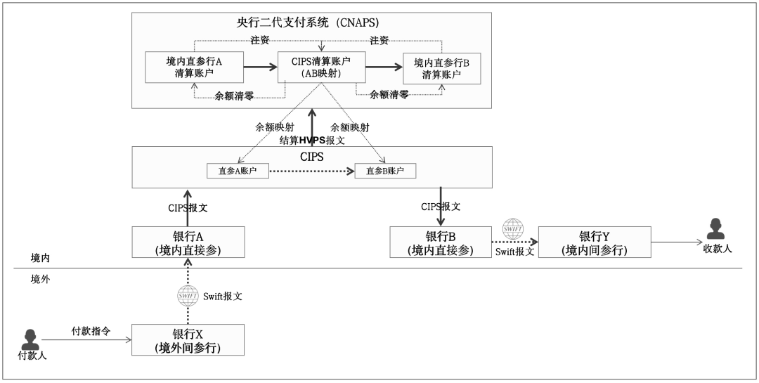 各直参行通过CIPS直接办理人民币跨境支付清算业务,各间参行通过直参行办理跨境支付清算业务