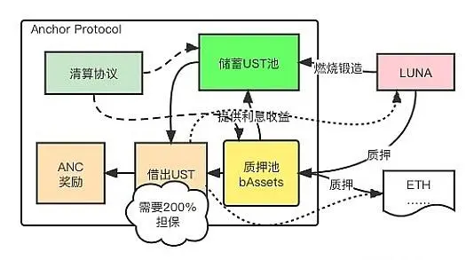 从开始的高息诱惑,Terra提供了一个名为Anchor的协议,给UST存款提供近20%的庞氏级年化收益。这吸引了海量逐利资金进入,UST规模迅速膨胀到几百亿美元。