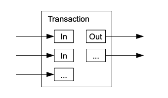 虽然可以单独处理每个币,但为每一分钱进行单独交易将是笨拙的。为了允许价值的拆分和组合,交易包含多个输入和输出。通常会有一个来自较大先前交易的单一输入或多个输入组合较小金额,并且最多两个输出:一个用于支付,另一个用于将找零(如果有的话)返回给发送者。