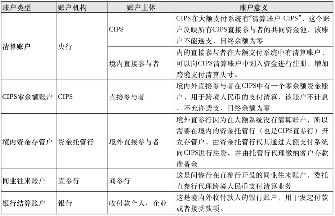 跨境支付清算离不开相应的资金账户,毕竟最终的清算就是不同账户之间的资金划转,在CIPS模式下主要涉及的账户模型如下图