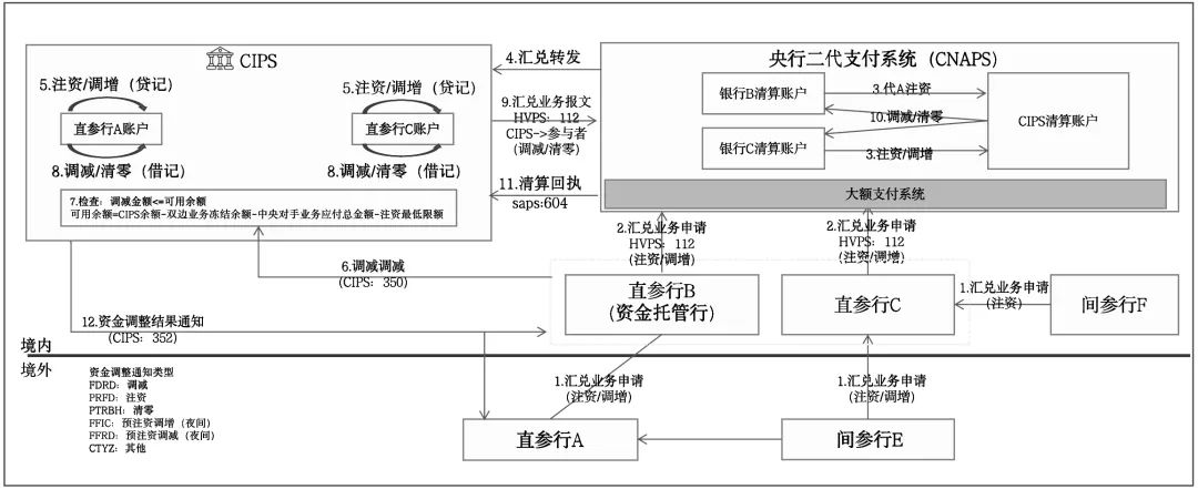 另外,因为CIPS是5*24小时运行,还有夜间场次,此时因为大额系统没有运行,所以参与者需要为夜间场次的流动性“预注资/预注资调增调减”,本质上来看,是对其在央行的清算账户中的资金进行冻结处理,这里不再赘述。