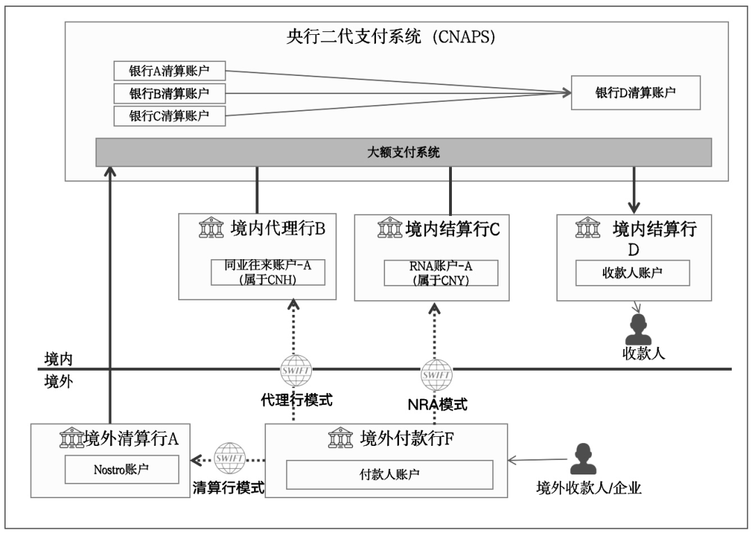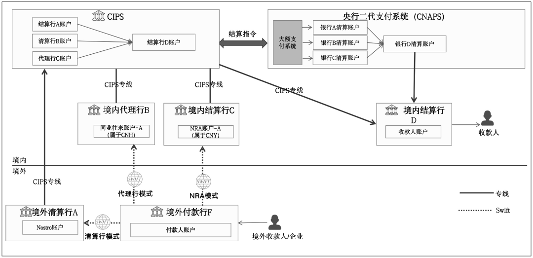 NRA模式,即非居民账户(Non-Resident Account)模式,允许非居民(如外国企业或个人)在本国银行开立账户,以便进行跨境支付和结算业务,从图中可以看出,当CIPS建成后,NRA开户行可以作为CIPS直参行,通过CIPS完成支付清算。
