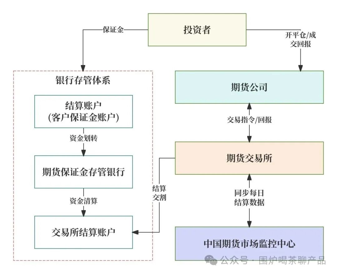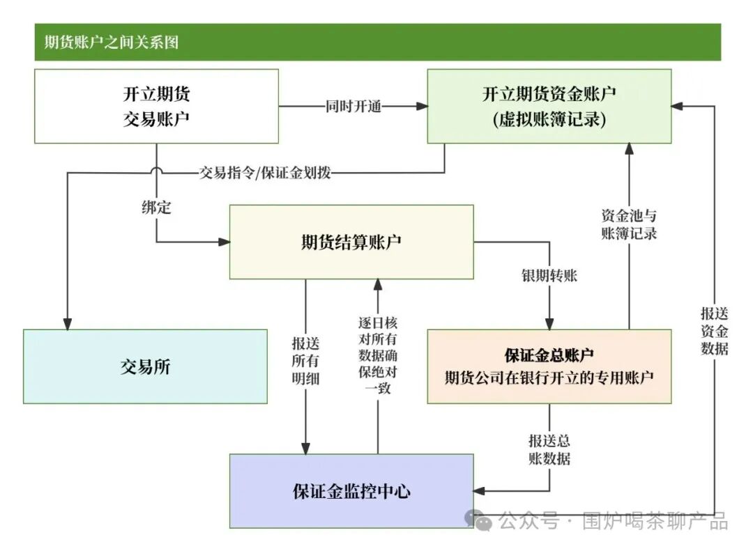 要厘清以上面8种期货账户之间的关系,对于绝大多数普通投资者来说,有一定的难度,至少是个比较专业性的问题。这些术语在日常交流中有时会被混用,但它们实际上指向一个体系中的不同环节。围炉通过一张图将为你彻底聊透概念,如下图所示: