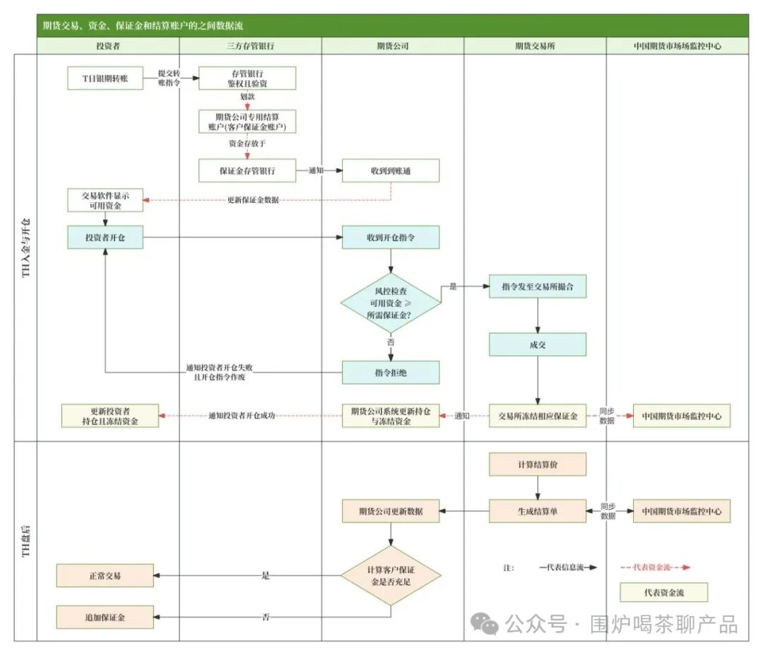 方便大家更好了解期货账户:期货交易、资金、保证金和结算账户的之间数据流,围炉特对上图进行浓缩和精减,如下图所示: