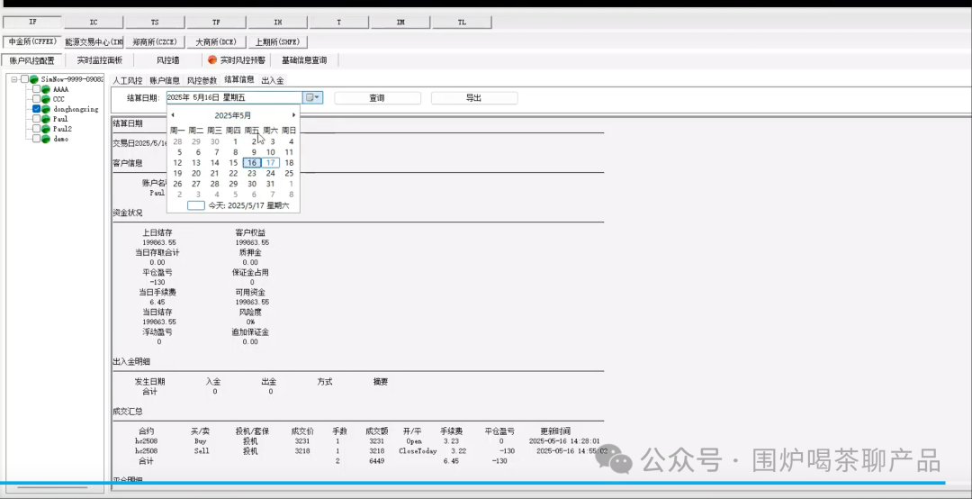 期货公司:根据结算账单核对并更新所有客户的账户数据,然后生成每个交易者的个人结算单(可在交易软件中查询)。当日亏损导致保证金不足(风险度 > 100%),期货公司将在下一交易日开盘前通知客户追加保证金。